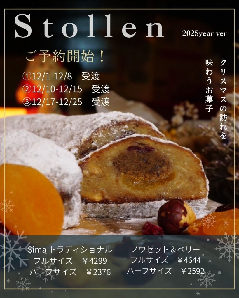 ナッツの香ばしさとベリーの酸味、バターの風味のリッチなシュトーレンです♪
