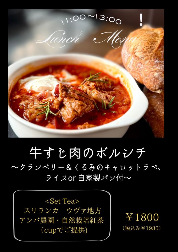 11月12月のランチは、牛すじ肉とビーツを使ったボルシチです♪